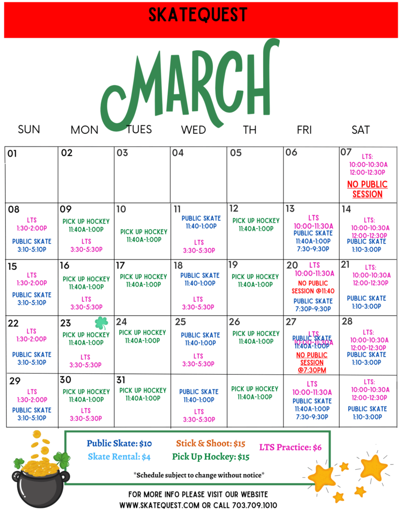 Our monthly calendars are available below and are subject to change without notice. For the most up-to-date information or any questions, please call 703-709-1010.